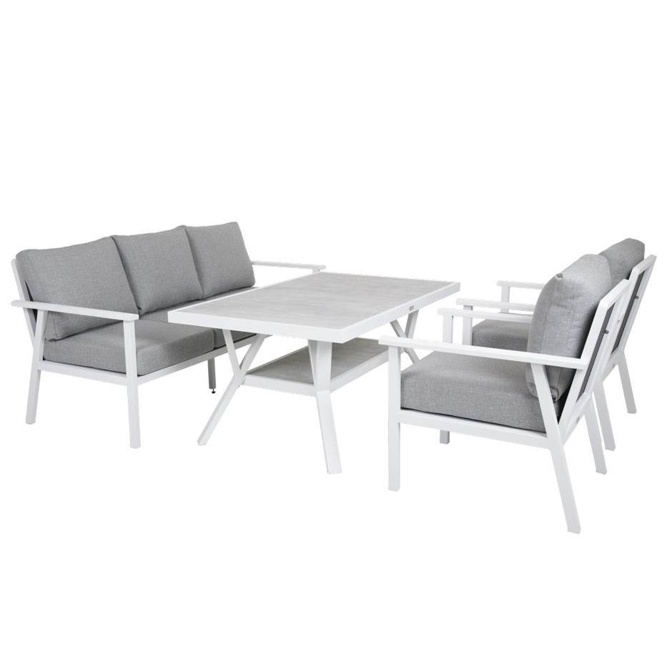 Karmstol Samvaro Lounge, B690 x D800 x H920 mm, inkl. ljusgrå dynor, vit aluminiumstomme, sitthöjd 480 mm