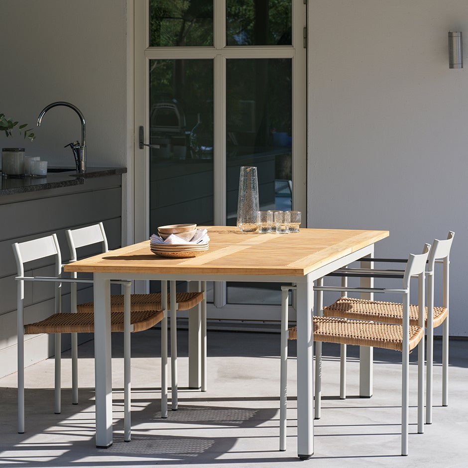DK är en hyllning till den skandinaviska designen med en luftig känsla som för tankarna till klassiska mästerverk från 50-talet. Elegant och stabil stomme i aluminium, kontrastfärgerna på armstödet och den flätade sitsen i konstrotting är detaljer som lyfter stolen och skapar en känsla som håller DK aktuell - länge.