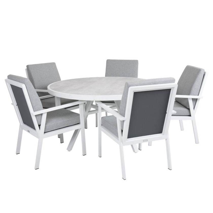 Utestol Samvaro Dining, B600 x D710 x H920 mm, inkl. ljusgrå dynor, vit aluminiumstomme