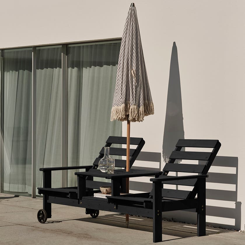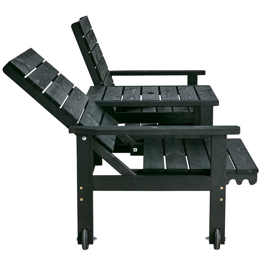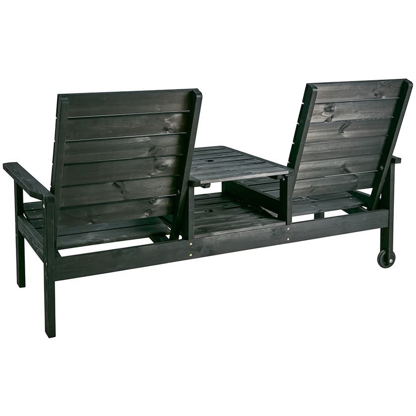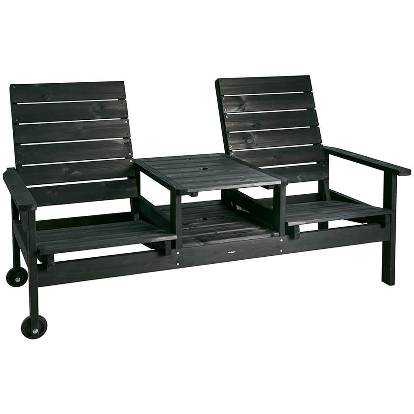 Soffa Du & Ja, 2-sits med bord och hjul, parasollhål, ställbar i tre lägen, svartlaserad furu