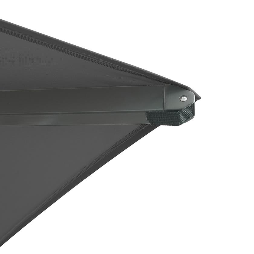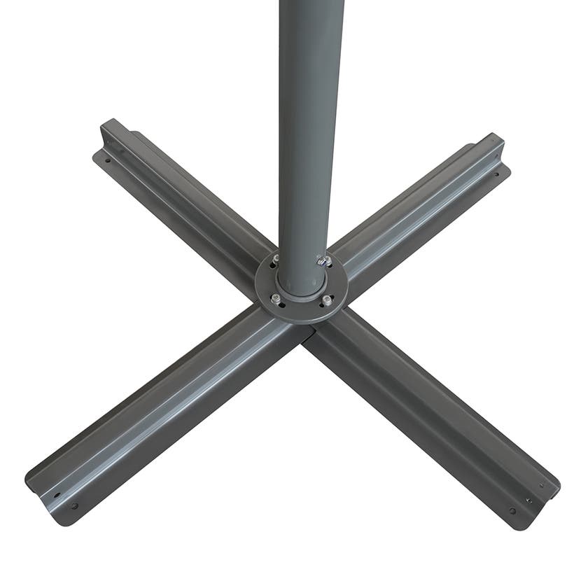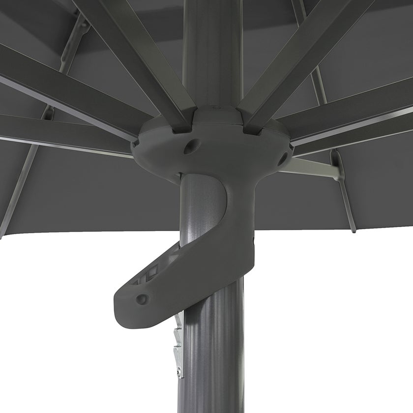 Mozzo är ett stort och fyrkantigt parasoll som erbjuder rejält solskydd. Med smart tillbehör kan flera parasoll kopplas samman och ge ett rejält tak till uteplatsen. Mozzo har ventilationsöppning och duk av 300-grams genomfärgad polyester med vattenavvisande beläggning. Stång med smart teleskopfunktion som gör att den blir längre när den fälls ihop, vilket gör att duken inte går emot borden. Tack vare sin storlek måste parasoll Mozzo förankras i underlag, en bas med kors och bultar ingår.
