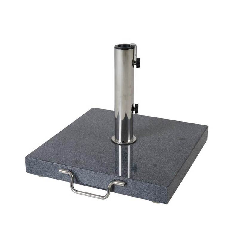 Granitfot med två olika färger/ytor att välja på, mörkgrå eller grå. Rör i rostfritt stål. Alla storlekar har handtag och två hjul för enkel förflyttning. För stänger 35-54 mm. Mått 450x450 mm. Välj vikt 30 - 40 eller 50 kg.