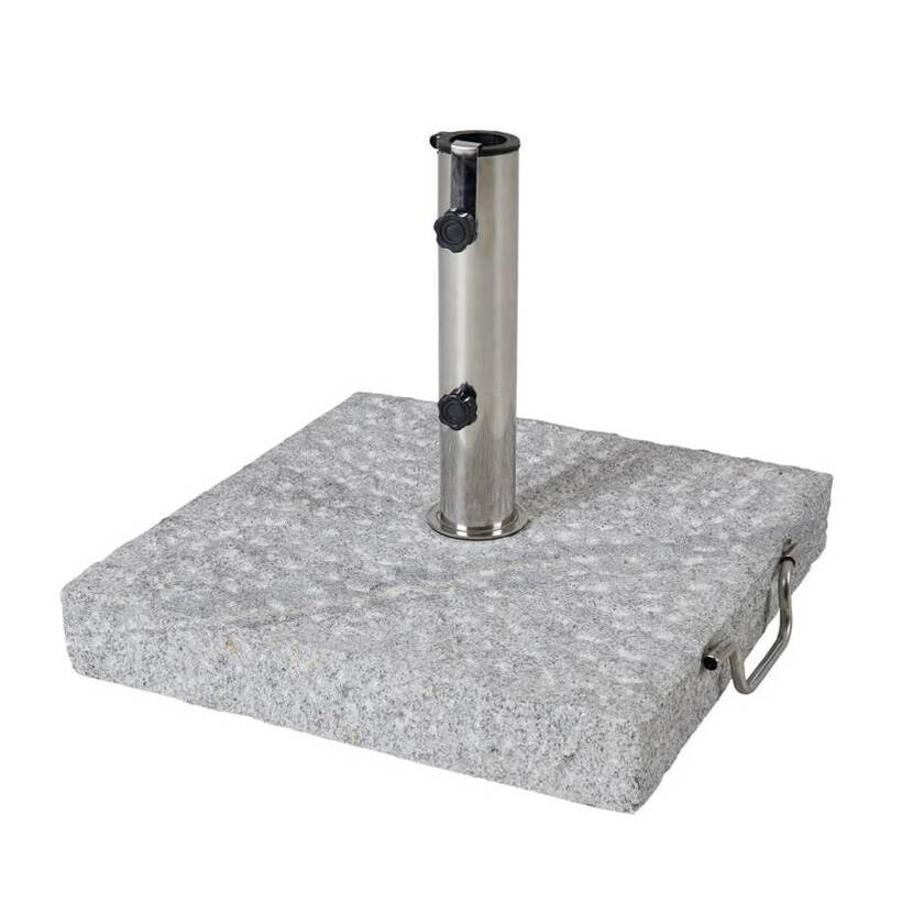 Granitfot med två olika färger/ytor att välja på, mörkgrå eller grå. Rör i rostfritt stål. Alla storlekar har handtag och två hjul för enkel förflyttning. För stänger 35-54 mm. Mått 450x450 mm. Välj vikt 30 - 40 eller 50 kg.