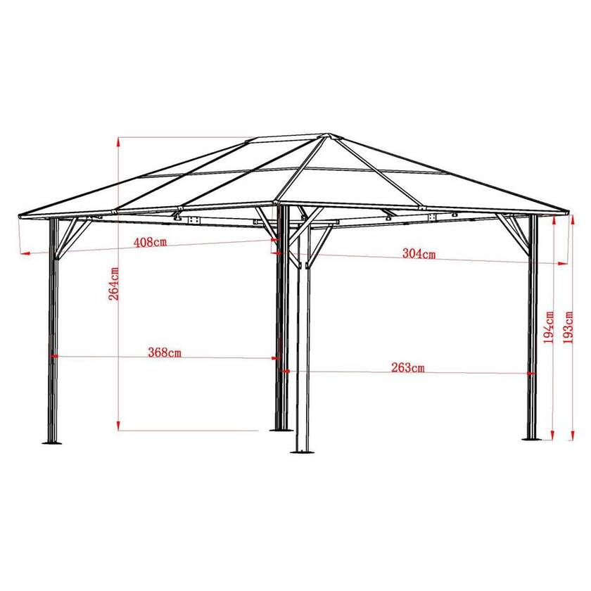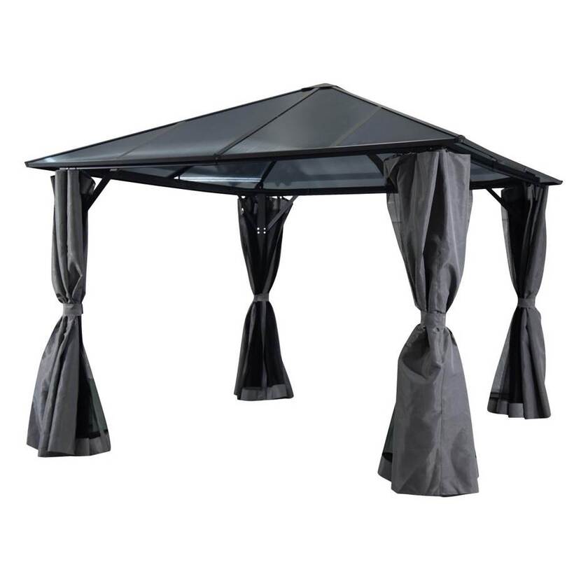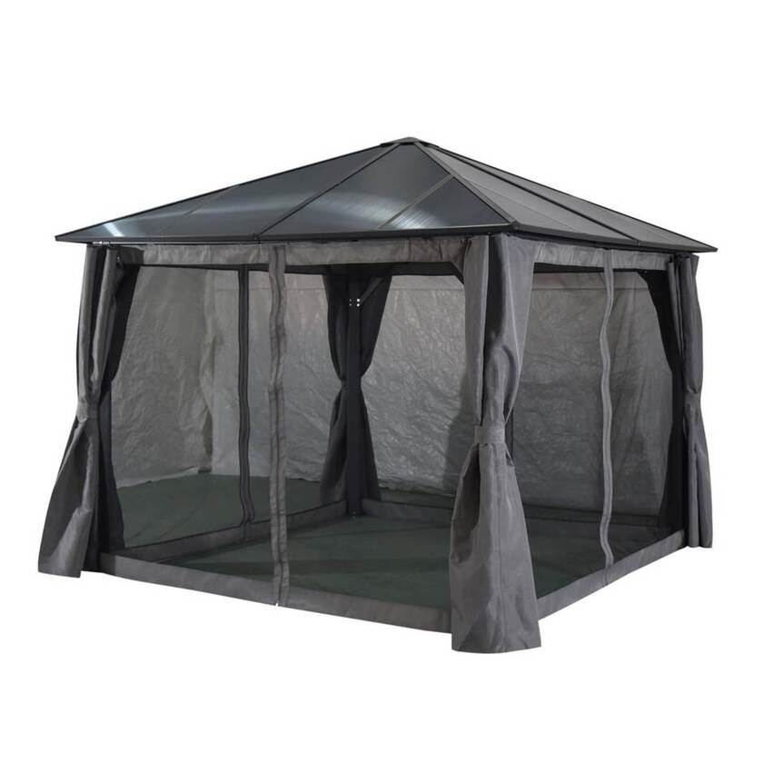 Paviljong Scopello, 3000x3000 mm, komplett med takplattor av polykarbonat, väggar och myggnät, grå