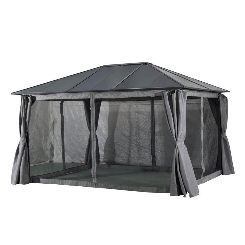 Paviljong Scopello, 3000x4000 mm, komplett med takplattor av polykarbonat, väggar och myggnät, grå