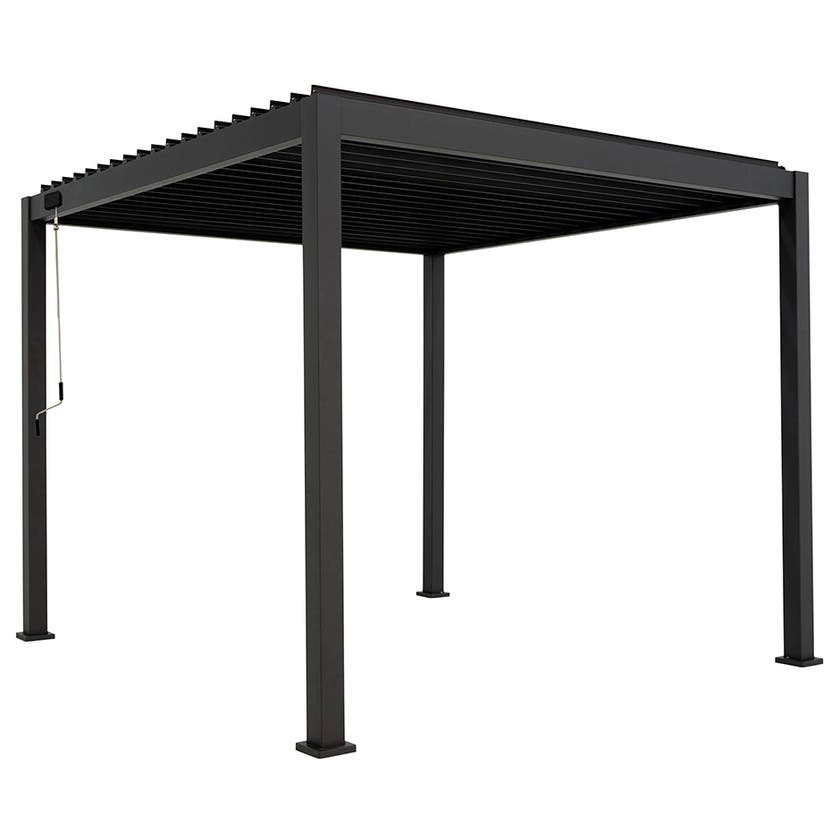 Skapa en härlig uteplats med pergolan Sombra. Pergola Sombra har en stabil konstruktion helt i aluminium. Lamelltaket har manuell öppning, där det är lätt att anpassa öppningen beroende på hur mycket skydd som önskas. Pelare med dränering.