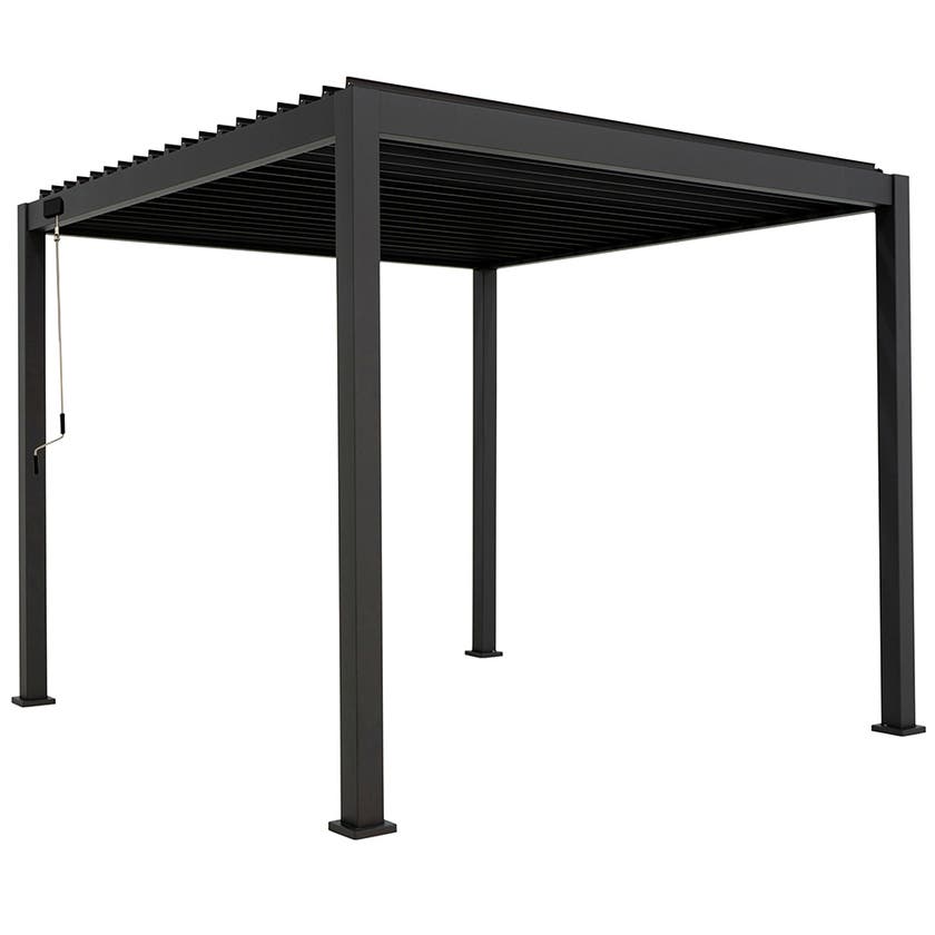 Skapa en härlig uteplats med pergolan Sombra. Pergola Sombra har en stabil konstruktion helt i aluminium. Lamelltaket har manuell öppning, där det är lätt att anpassa öppningen beroende på hur mycket skydd som önskas. Pelare med dränering.