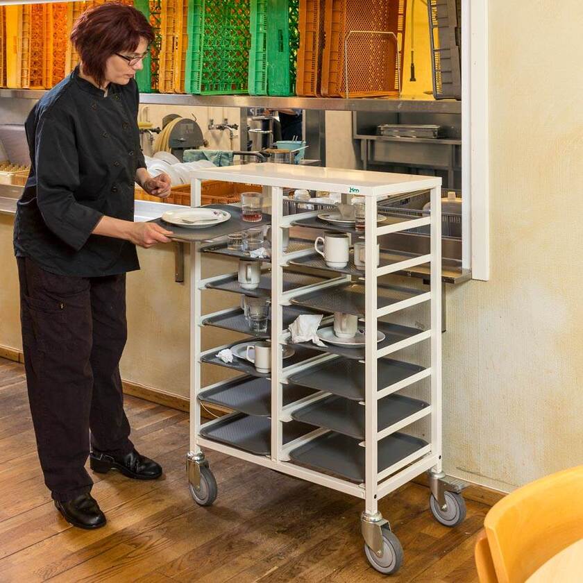 Tucker är en elegant brickvagn / brickställ i vit pulverlack. Plats för 14 st brickor 300x400 mm, brickor ingår ej. Lämpliga brickor finns att finna i tillbehörslistan nedan.