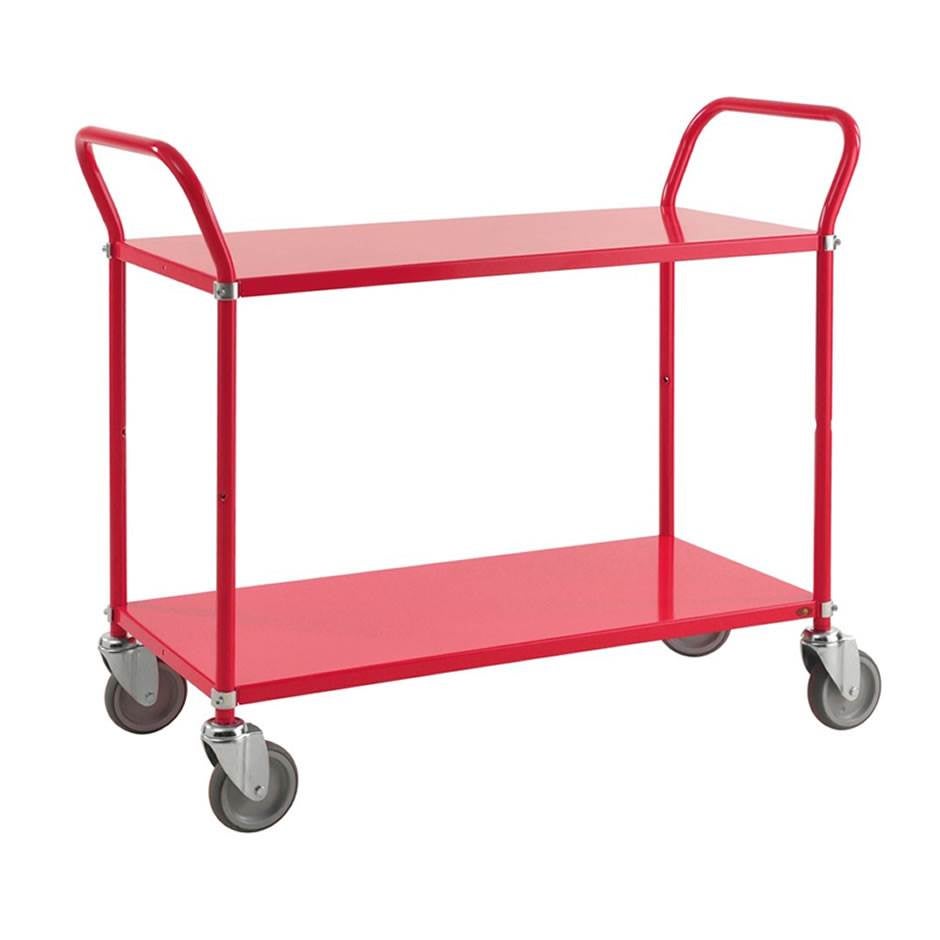 Hyllvagn Color, 2 plan, L1080 x B480 x H940 mm, kap. 250 kg, röd