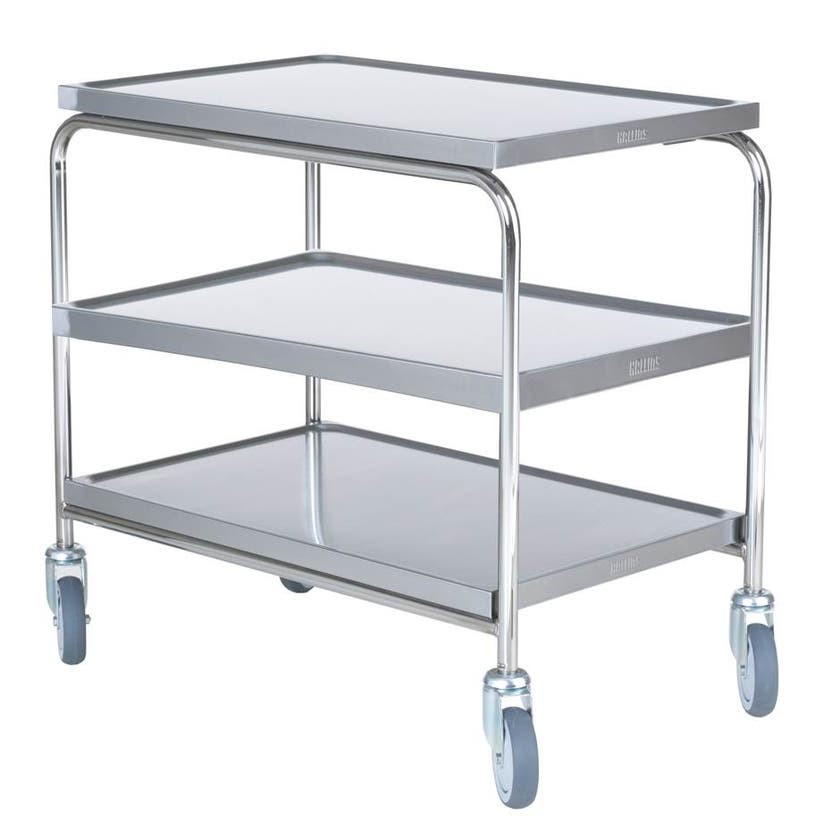Hyllvagn Midi är en svensktillverkad vagn som finns i olika utföranden. Hyllvagnen har tre plan. Vagnen finns att välja med hyllplan och stativ i rostfritt, hyllplan i rostfritt med stativ i krom eller med hyllplan i laminat med stativ i krom.
