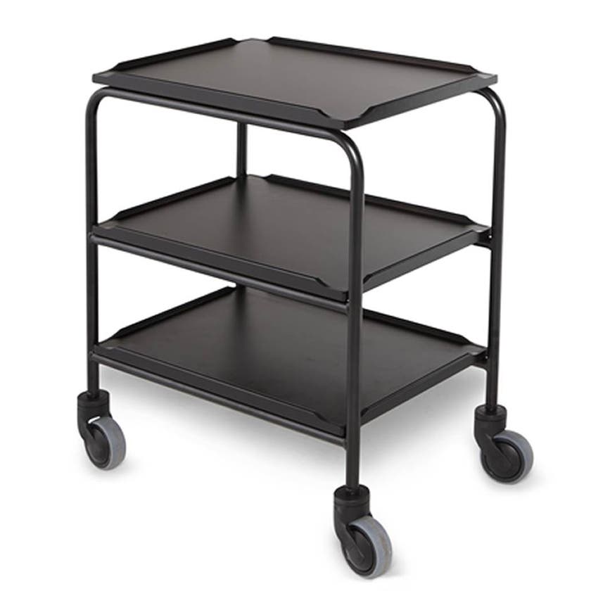 Serveringsvagn Molly, utan handtag, 3 plan, 600x400 mm, Svart med svart stativ