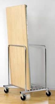Bordstransportör som lastar upp till 6 bord. Sidostöden är 980 mm höga och är avtagbara. Vagnen kan även användas för annat långgods. Kraftiga länkhjul diam. 125 mm med grå gummibana.