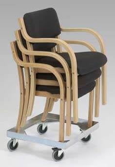 Stoltransportör med 100 mm länkhjul och grå gummibana, anpassad för att passa de flesta typer av 4-bens stolar. Mått 550 x 550 x 175 mm.