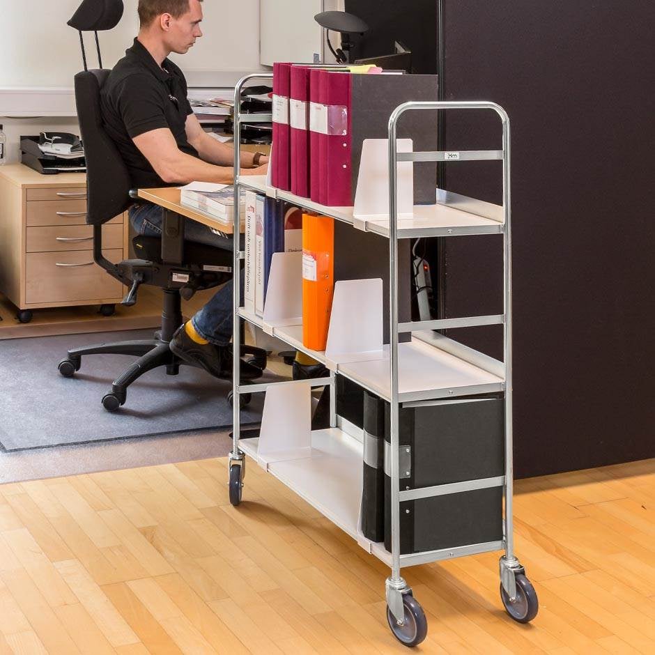 Arkivvagn Isaac, 3 plan, L790 x B290 x H1140 mm, kap. 75 kg, inkl. 6 st bokstöd