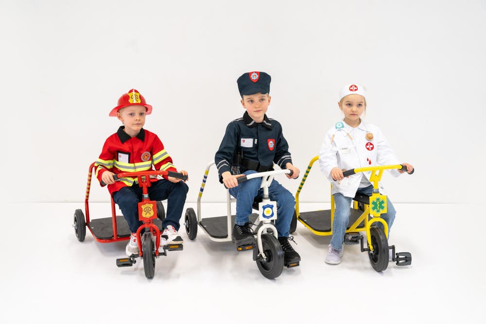 Bli en vardagshjälte och utforska din fantasi! Hero-paketet från Rose består av tre utrycknings-cyklar redo till undsättning; ambulans, polis och brandkår.
