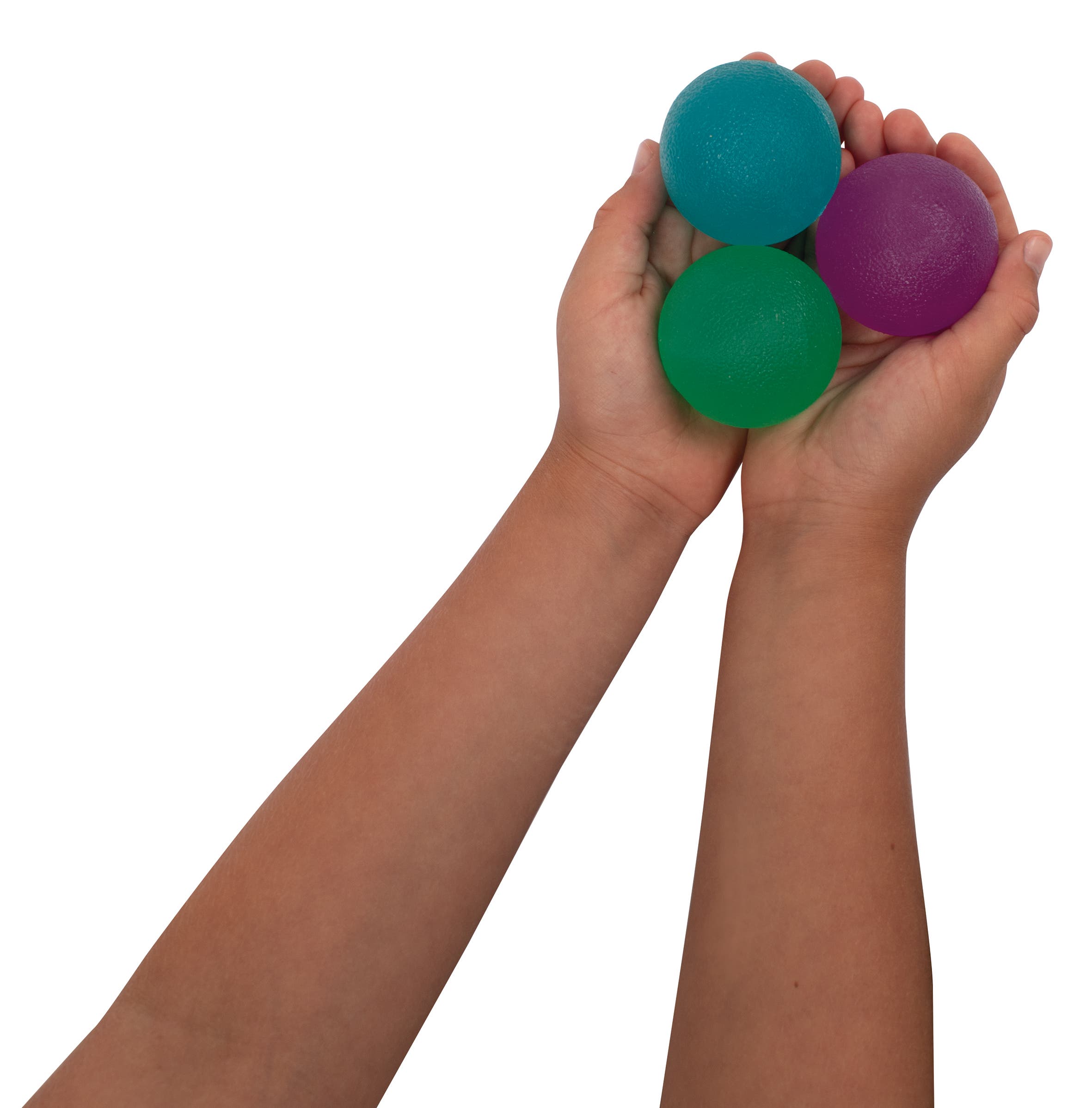 Stressbollar i tre olika motstånd (fast, medium och mjuk) som förbättrar fingermotoriken. Tränar hand-och fingermuskulaturen. Perfekt att hålla i handen för att underlätta koncentration och inlärning för elever som har svårt att sitta still eller bara vill ha något lugnande i handen. Från 5 år.