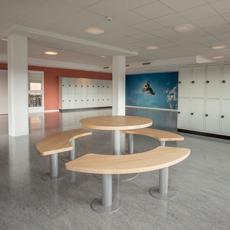Finns som rak och svängd modell. Cirkum sittbänk är kopplingsbar. Alltid förborrad platta för golvmontage. Lämpar sig enbart för inomhusbruk.