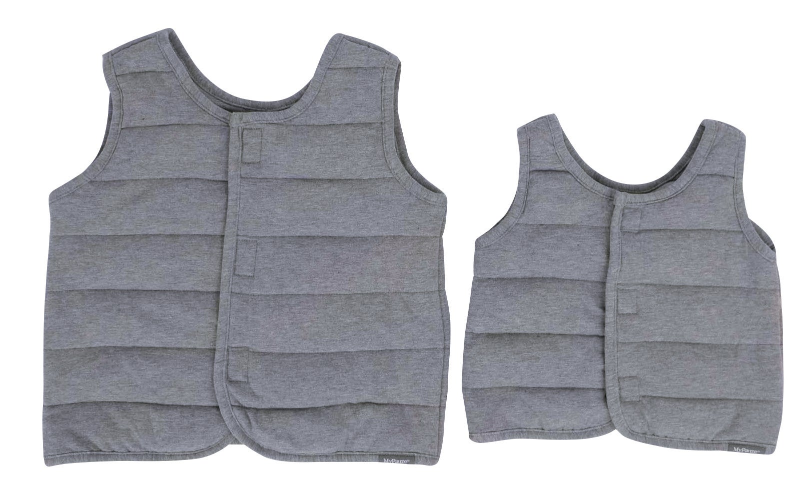 Mjuk och bekväm tyngdväst som ger en känsla av stabilitet och trygghet. Västen är utformad för att stimulera muskel- och ledsinnet, vilket kan bidra till ökad koncentration och lugn. Tyngden upplevs som en ordentlig kram och kan användas vid sinnesintegrerande träning, lek eller stilla aktiviteter. Rekommenderas att användas i kortare stunder, cirka 15–20 minuter, för bästa effekt. Inte avsedd för styrketräning.
