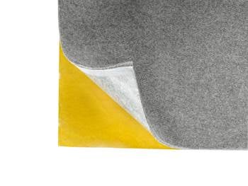 Dämpfilten är grå och 5 mm tjock. Tillverkad av 100 % polyesterfibrer utan tillsatser av kemikalier eller lösningsmedel, vilket gör den till ett miljövänligt alternativ. Självhäftande baksida.