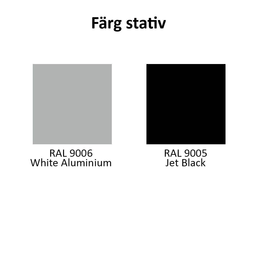 Höjdinställningen varieras med hjälp av gaslift. Som tillval går det att beställa borden med väskkrok på sidan av stativet. Stativet i sig är valbart i grått eller svart utförande.