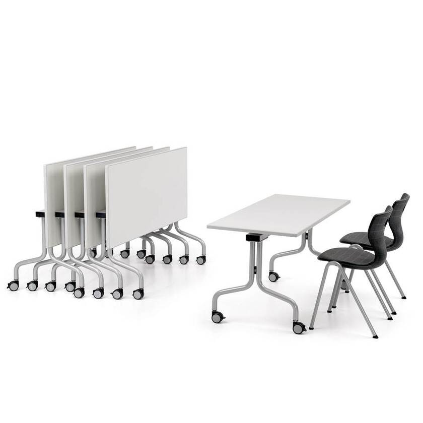 Skolbord Flip med hjul, D700xL1800 mm, fällbar bordsskiva LignoPAL, höjd 720 mm