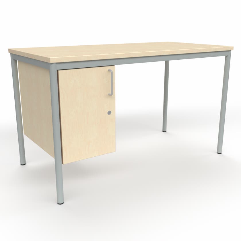 Lärarbordet är försett med ett skåp, B400 x D565 x H520 mm. Välj mellan skåp på vänster eller höger sida av bordet. Skåpet går att få med eller utan lås.
