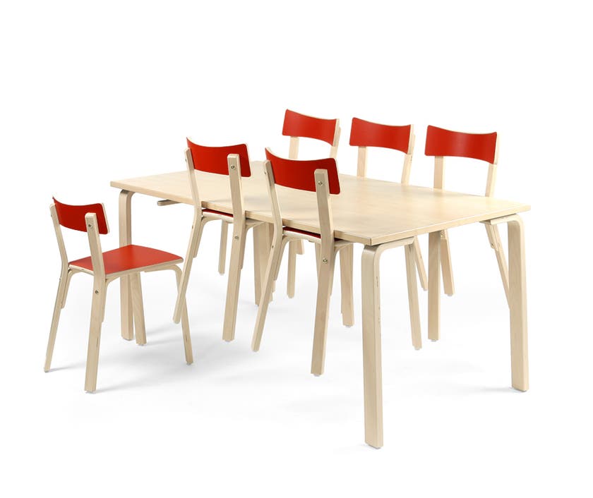 Bord i vår serie Klara. Som standard i björkfanér med mjukt fasad träkantslist. Laminatet kan mot pristillägg levereras i färgerna vit, gul, röd, blå eller grön. Finns i sex olika höjder.