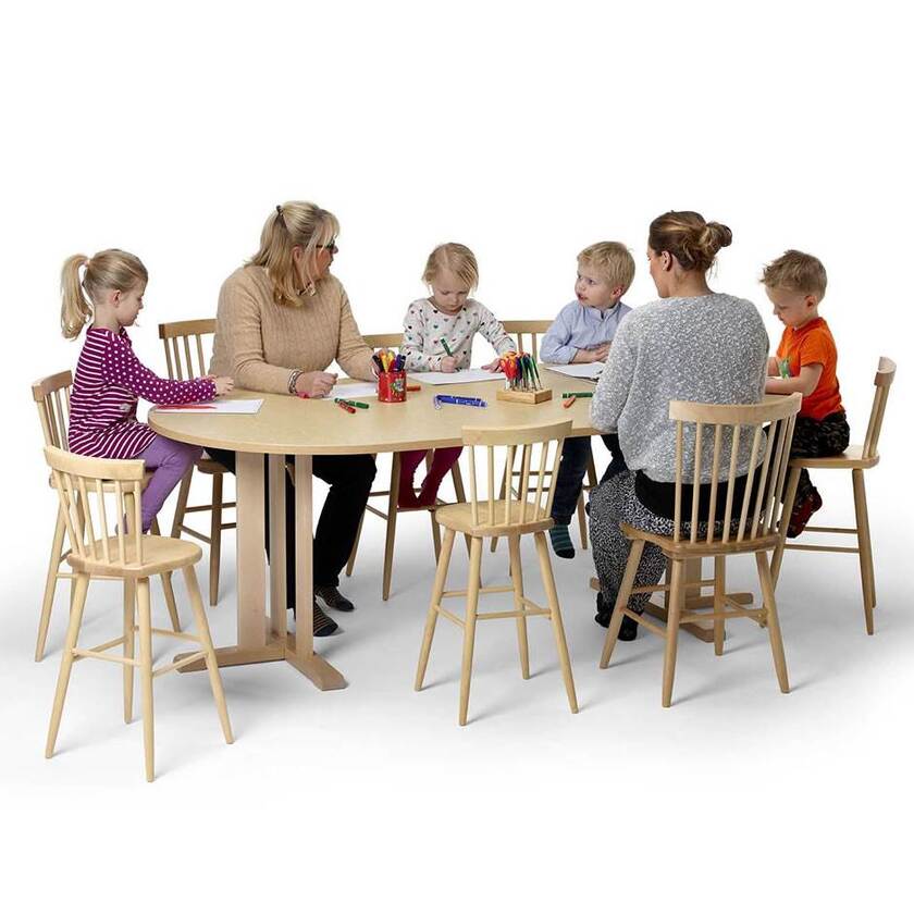Kupol är ett stabilt bord som från grunden är anpassat för att uppfylla de hårda krav som ställs i förskolan. Bordet har en stadig och robust konstruktion helt utan skarpa hörn och vassa kanter.