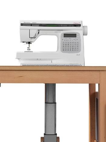 Symaskinsbordet är utvecklat för funktionell sömnad och förvaring av symaskin. Bordet kan även användas till andra arbeten. Du kan höja och sänka symaskinen steglöst och nästan ljudlöst genom en enkel knapptryckning! Under bordsskivan finns en praktisk förvaringslåda.