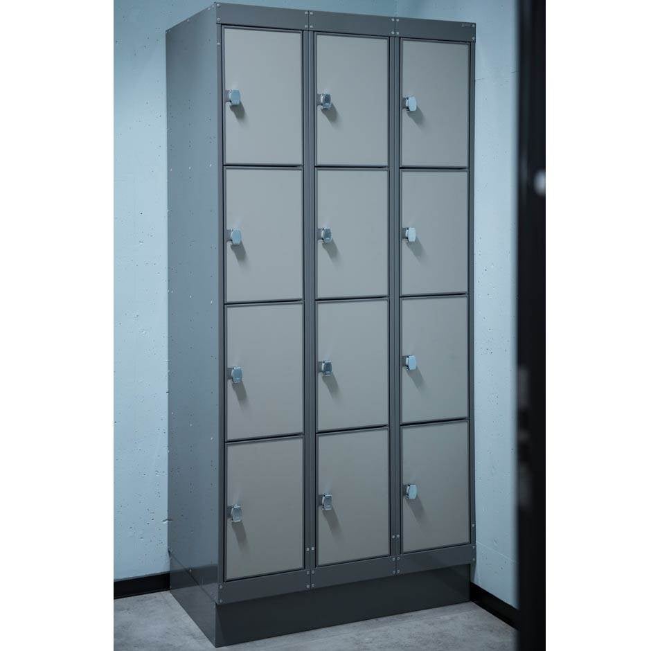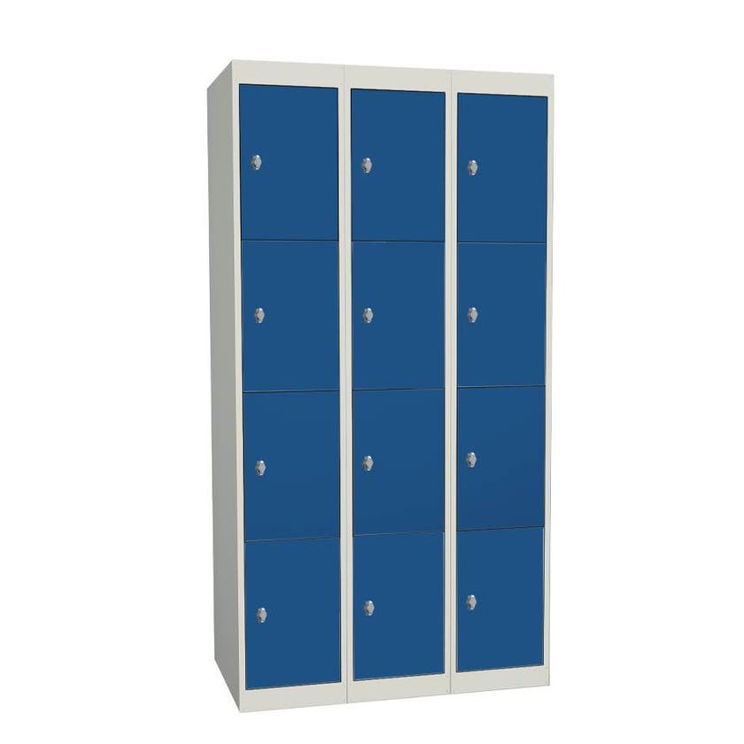 Elevskåp Esko School 300, 3 x 4 i höjd, Mått B900 x D550 x H1750 mm, plant tak