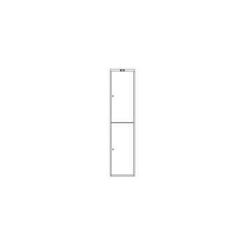 Skåpet har två fack i höjd, utvändigt fackmått B300 x H875 mm. Varje fack är inrett med två bok-/pärmfack och två klädkrokar.
