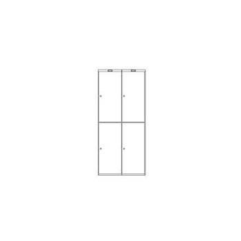 Skåpet har två fack i höjd, utvändigt fackmått B400 x H875 mm. Varje fack är inrett med två bok-/pärmfack och två klädkrokar.