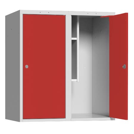 Robust och elegant elevskåp som är förstärkt i varje detalj för att tåla skolmiljöns tuffa tag. Förstärkt ståldörr i 15 mm tjock sandwichkonstruktion med svetsade stålprofiler i dörrens hela höjd. Luckan är försedd med ett extra kraftigt, svetsat dörrstopp vid 90°. Som standard är skåpet försett med skolklinka för hänglås. Kan även levereras med cylinderlås, Master Lock kodlås alternativt hänglås med kodlås, se tillbehör.