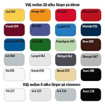 Välj mellan lucka i 20 färger och stomme i 4 färger. Levereras med graverad nummerbricka.