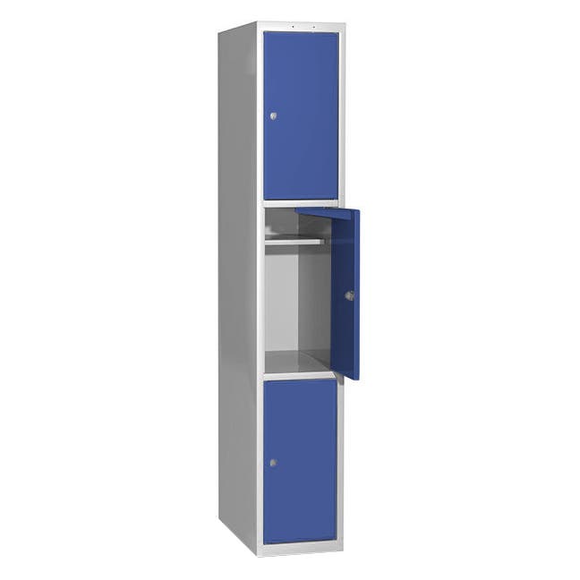 Elevskåp med förstärkt ståldörr, skolklinka för hänglås, 300x550x1900 mm, 3 fack