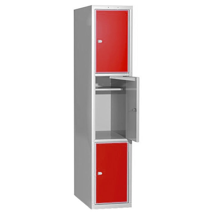 Elevskåp med stål/laminatdörr, skolklinka för hänglås, 400x400x1900 mm, 3 fack