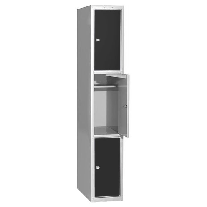 Elevskåp med stål/laminatdörr, skolklinka för hänglås, 300x400x1900 mm, 3 fack