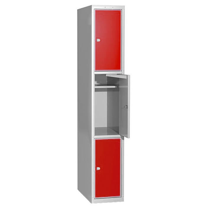 Elevskåp med stål/laminatdörr, skolklinka för hänglås, 300x400x1900 mm, 3 fack