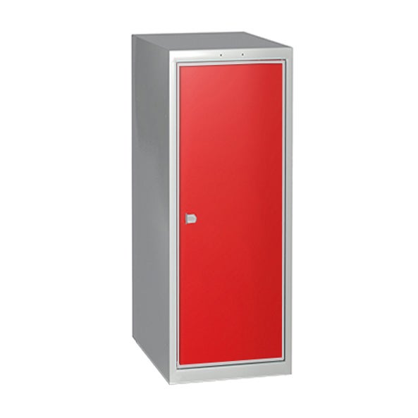Robust och elegant elevskåp som är förstärkt i varje detalj för att tåla skolmiljöns tuffa tag. Lucka i kraftigt stål med högtryckslaminerad MDF-front, vilket ger maximal styrka och stabilitet. Luckan är försedd med ett förstärkt dörrstopp vid 90°. Som standard är skåpet försett med skolklinka för hänglås. Kan även levereras med cylinderlås, Master Lock kodlås alternativt hänglås med kodlås, se tillbehör.