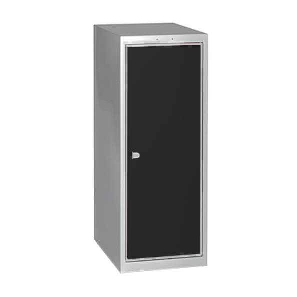 Robust och elegant elevskåp som är förstärkt i varje detalj för att tåla skolmiljöns tuffa tag. Lucka i kraftigt stål med högtryckslaminerad MDF-front, vilket ger maximal styrka och stabilitet. Luckan är försedd med ett förstärkt dörrstopp vid 90°. Som standard är skåpet försett med skolklinka för hänglås. Kan även levereras med cylinderlås, Master Lock kodlås alternativt hänglås med kodlås, se tillbehör.