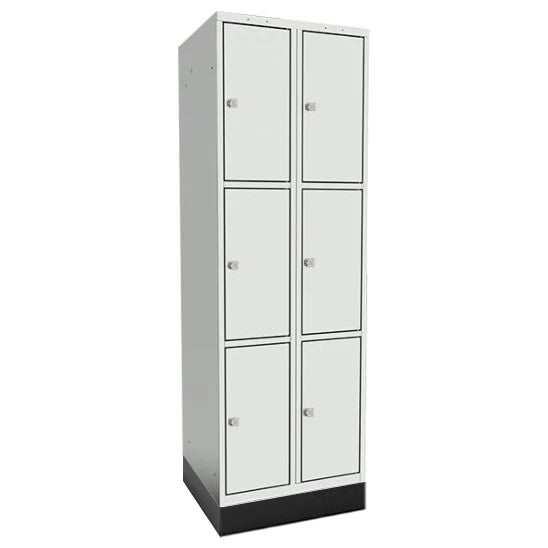 Sektion med 3 x 2 luckor, totalt mått B600 x D400 x H1940 mm. Sockelns höjd 140 mm. Välj mellan klinka för hänglås eller cylinderlås. Huvudnyckel finns som tillbehör.