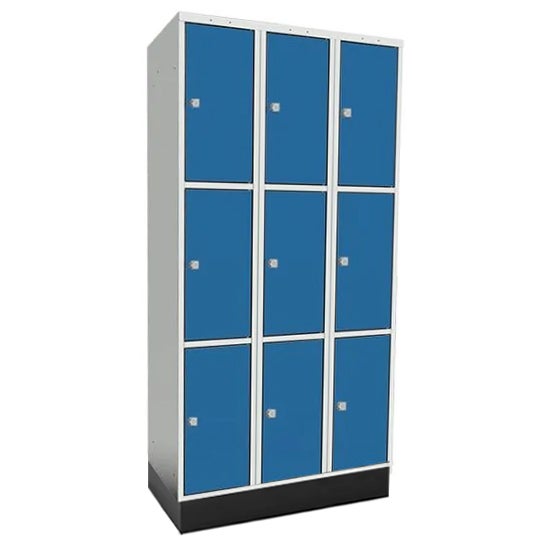 Skolskåp SMS, med sockel, 3x3 dörr, skåpbredd 300 mm, 900x400x1892 mm, klinka