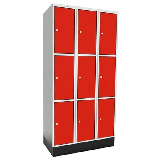 Skolskåp SMS, med sockel, 3x3 dörr, skåpbredd 300 mm, 900x400x1892 mm, cyl.lås
