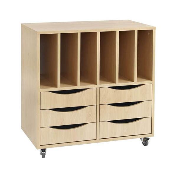 Elevvagn med 6 lådor och 6 bokfack, för 6 elever, 800x450x800 mm