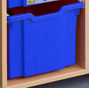 Smidig förvaringsvagn med sex fack och sex höga plastbackar. Plastlådorna glider på plastmedar. Vagnen har fyra svängbara hjul, varav två med broms. Välj mellan vagn i bok-, björk- eller vit laminat och plastbackar i färgerna röd, blå eller transparent.