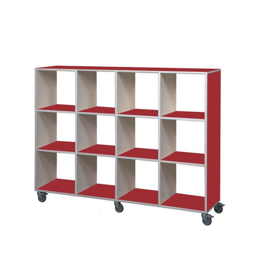Kubhylla Kubus Color, Öppen med hjul, 12 fack, 4x3