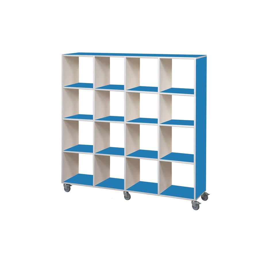 Kubhylla Kubus Color, Öppen med hjul, 16 fack, 4x4