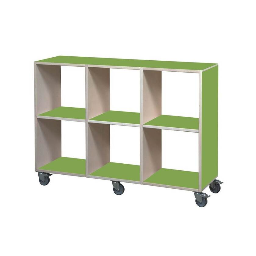Kubhylla Kubus Color, Öppen med hjul, 6 fack, 3x2