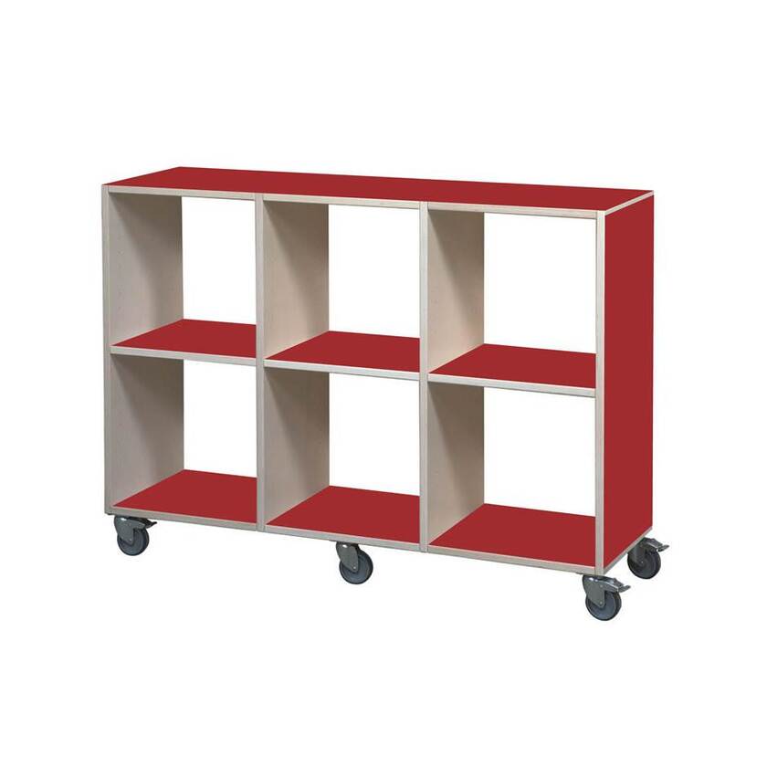 Högkvalitativ öppen kubhylla av 18 mm vitpigmenterad björkkryssfanér. Kubens utsida är klädd med laminat, välj mellan 5 olika färger. Levereras med låsbara hjul.