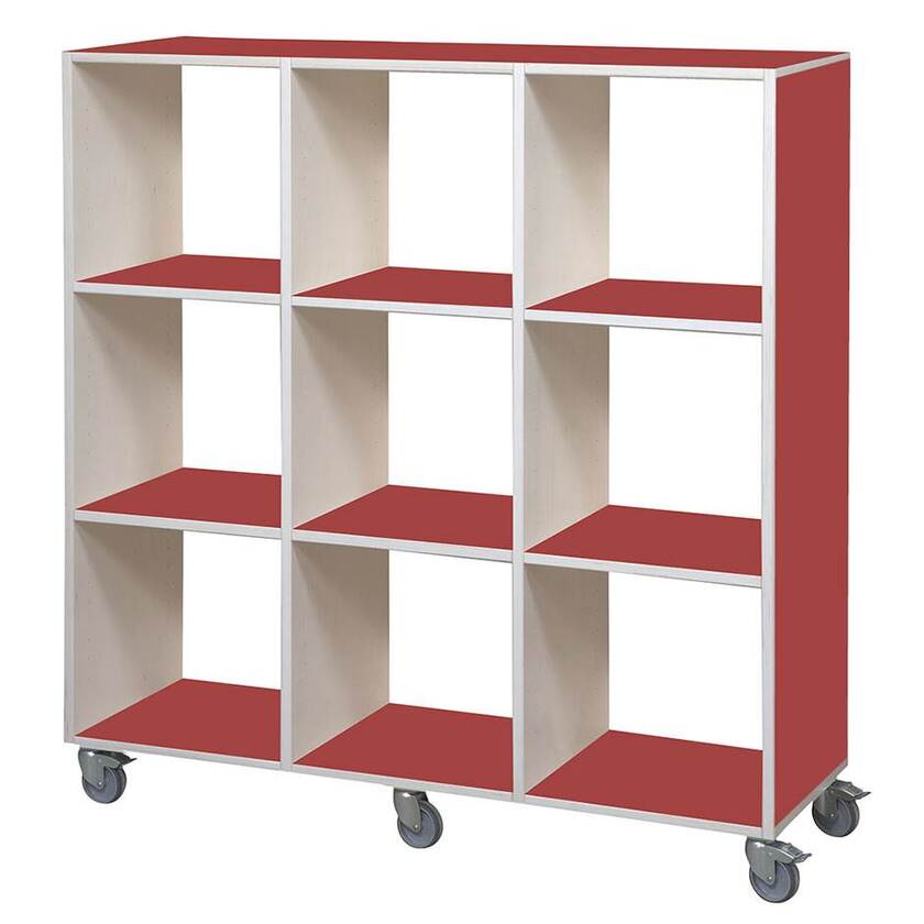 Kubhylla Kubus Color, Öppen med hjul, 9 fack, 3x3